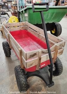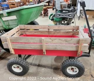 Lot #0302: Red Steel Wagon w/Inflatable Tires & Wood Rail