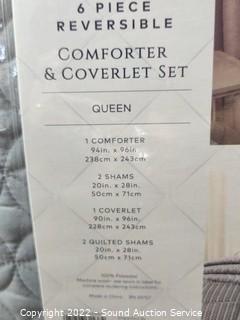 Lot #0296: Style Decor Queen 6pc Comforter & Coverlet Set