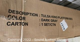 Lot #0351: Tulsa King Dark Gray Platform Bed