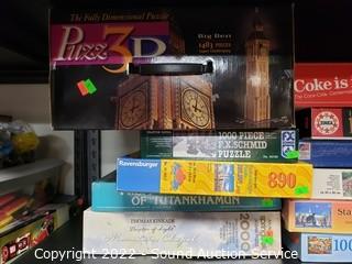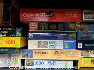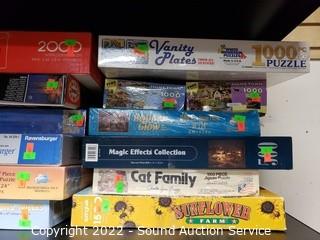 Lot Details: Refer to photos for styles, puzzle count, images. 4 are sealed, others unknown completeness.
