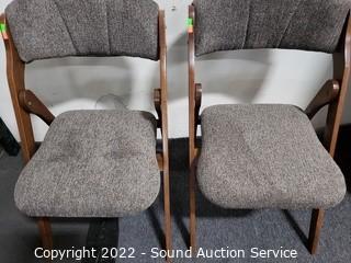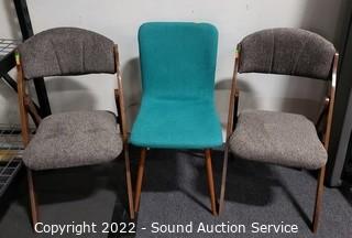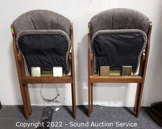 Lot #0010: 2 Padded Folding Wood Chairs & Accent Chair