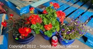 Lot #0162: 3 Live Geranium, Begonia, Garden Lobelia Plants