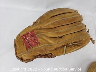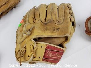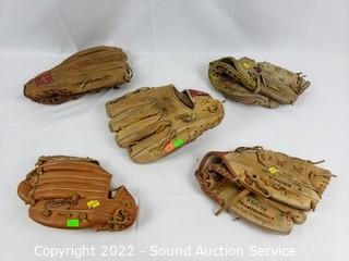 Lot #0077: 5 Leather Rawlings Baseball Gloves