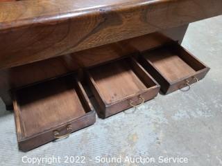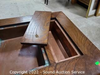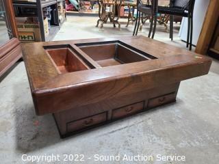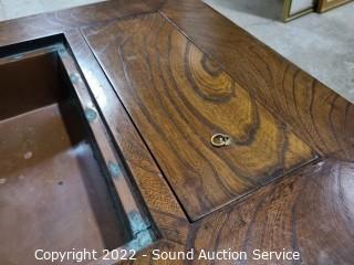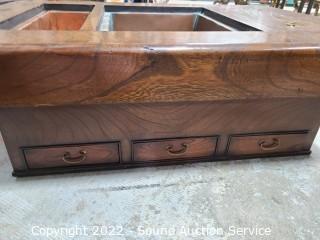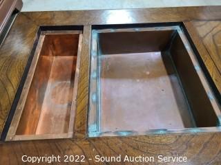 Lot #0017: Antique Japanese Wood & Copper Tray Hibachi w/Drawers - Updated