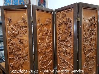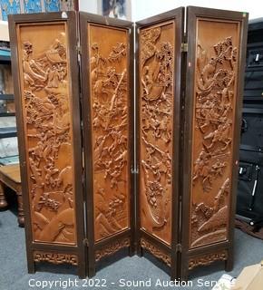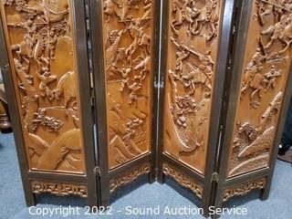 Lot #0027: Carved Wood Asian Scene 4-Panel Privacy Screen
