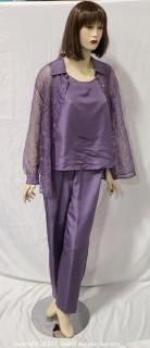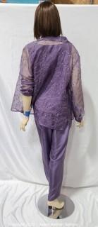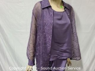 Lot Details: ISC 100% silk 3pc outfit size medium, synthetic fiber wig (refer to photos for brand). Mannequin is 70" tall.