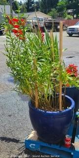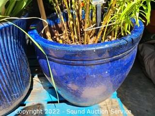 Lot Details: 18" H x 20" Dia pottery planter pot, 44" tall plant.