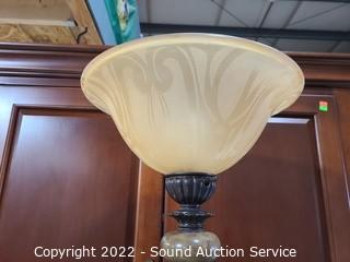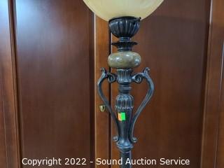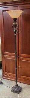 Lot #0299: Nice Bronze Finish Frosted Glass Shade Floor Lamp