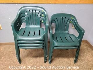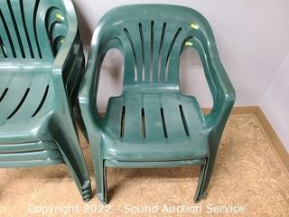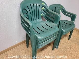 Lot #0321: Set of 6 Green Plastic Stackable Patio Chairs