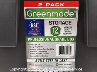 Lot #0094: 2 Greenmade 12 Gal Heavy Duty Storage Totes w/Lids