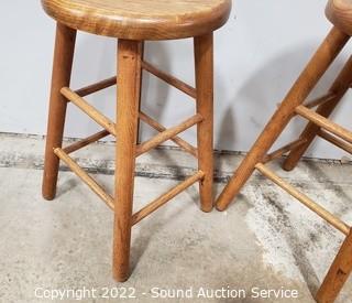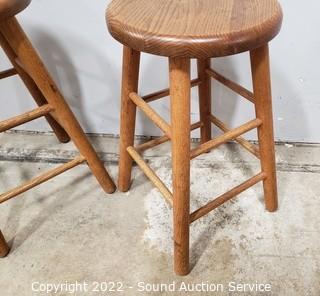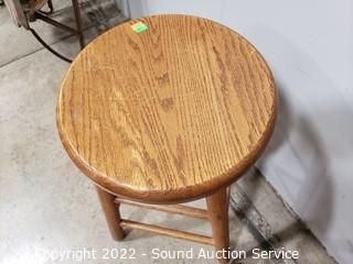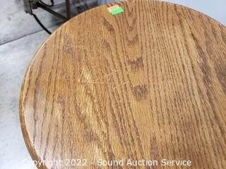 Lot Details: Solid wood construction. 24" H x 13" Dia. Some light wear to the finish.