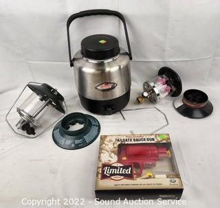 Lot #0173: 2 Propane Lanterns, Drink Dispenser, & Sauce Gun