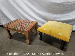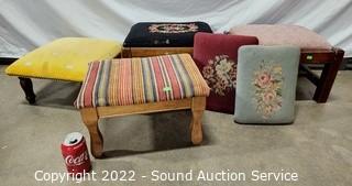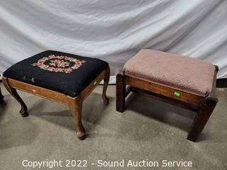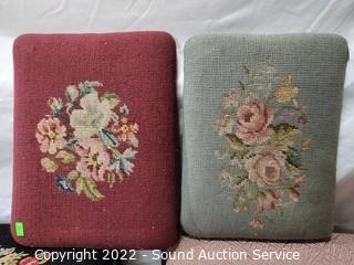 Lot #0279: 4 Antique/Vintage Stools w/2 Needlepoint Cushions