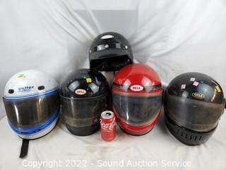 Lot #0253: 4 Full & 1 Open Face Motorcycle Helmets