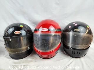 Lot Details: All approx. 7-1/4" Various wear from use. All full face are by Bell, THH open helmet.