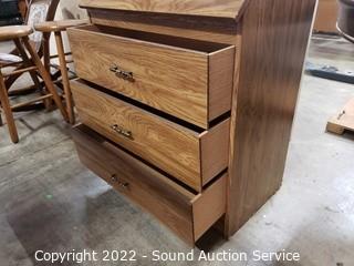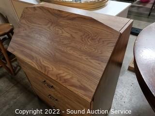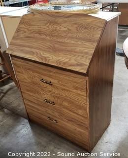 Lot Details: Particle board construction laminate finish. 37" H x 28" W x 16" D. Various wear to finish.