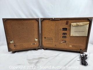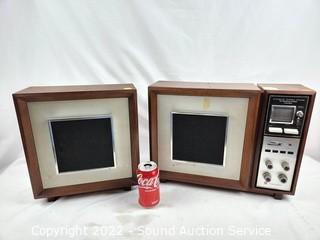 Lot Details: Tested using external speakers not included & works, internal speaker is not functioning, external speaker is functioning but needs input re-soldered to speaker. Model RE-787. 13" H x 17.5" x 5" main unit & 13" H x 12" x 5" speaker.
