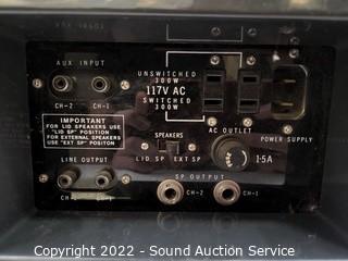 Lot Details: has power. Playback non-functioning, one reel not spinning, grabbing tape in play. Rewind works. Speakers, tested externally and worked. Face plate not attached inside unit.