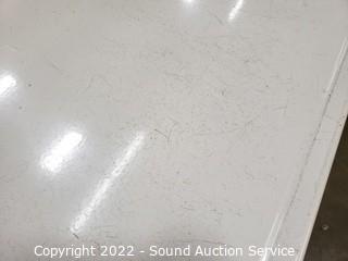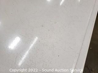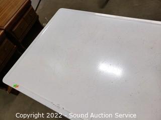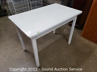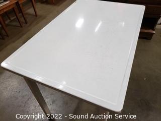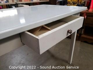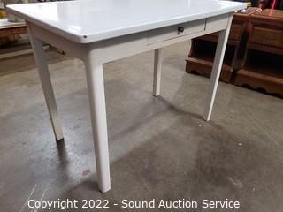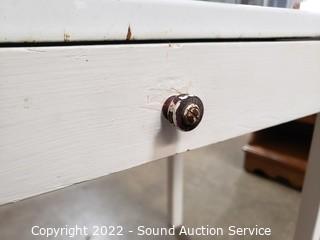 Lot Details: White painted wood legs, various wear to the finish from use. 30" H x 40" W x 25".
