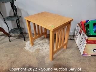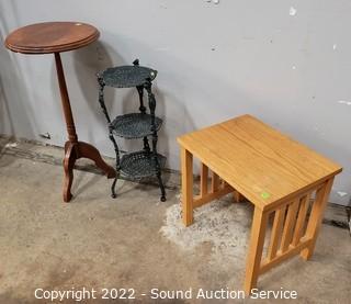 Lot #0342: Wood Side Tables, Wood & 3-Tier Cast metal Stands