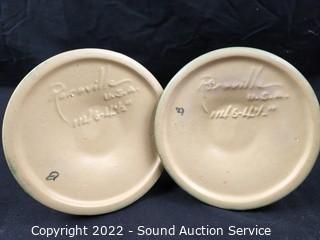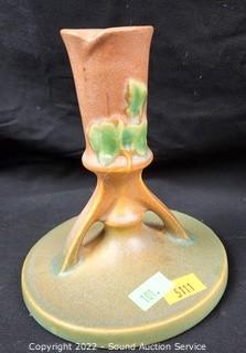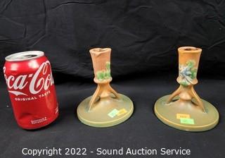 Lot #0101: 2 Roseville Pink Columbine Candlestick Holders