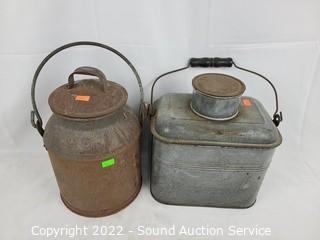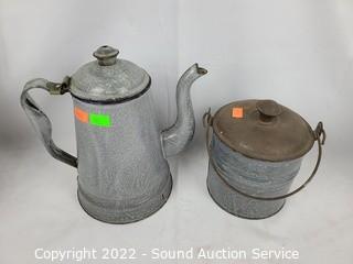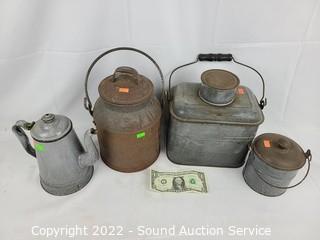 Lot #0163: 4 Vtg. Enameled & Galvanized Canisters & Teapot