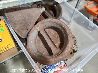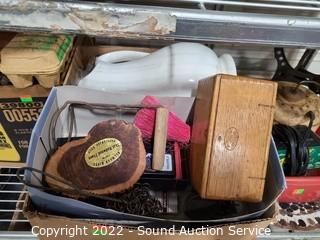 361 Lots including; Wood Yard Art Ferris Wheel, Rough Cut Wood Boards, Sentry Combination Fire Safe, Wood Barrel, Gray Fabric Power Lift Recliner, Farm Equipment, Some Really Nice Gold & Silver Jewelry, Antique Chests, Antique Pot Belly Bakers Tables, Antique School Desks, Honda GX25 Mantis 4-Stroke Gas 9" Roto-Tiller, Antique Wood Barrel Hand-Crank Butter Churn, Stoneware Crocks, Vtg. Child's Wood Highchairs, Trundle Day Bed w/Mattresses, Olde Solid Maple Rocking Baby Bassinet Bed, Vintage Cannon Heater No.18 Stove, Antique Apothecary, Pottery & Other Bottles, Partial Skull Mount Antlers, Antique Anchor Brand Clothes Wringer, Antique Brunswick Phonograph, Antique Primitive Ox Yoke, Vtg. Royal Doulton Brambly Hedge Porcelain China, Antique/Vintage Canning Jars, Blown Glass Fishing Floats, Cast Iron Cookware, Metal Art Dog Sculpture & So Much More!!!