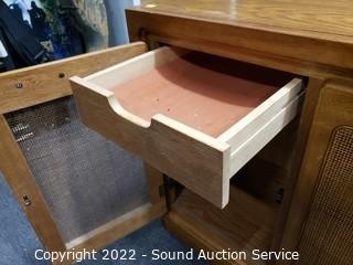 Lot #0004: Oak Wicker Wove Front Cabinet/Credenza
