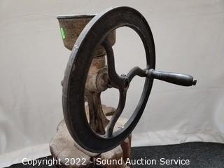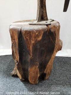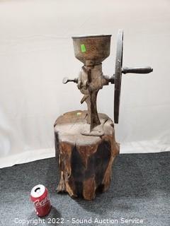 Lot #0028: Vintage Food Chopper, Grinder Attached to Log