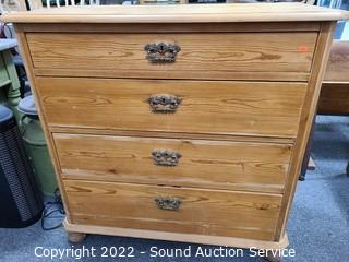 Lot #0337: Vintage Natural Wood 4-Drawer Dresser