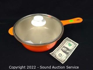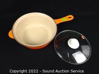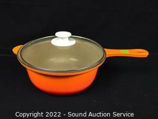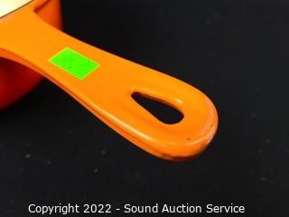 Lot #0197: Vtg. Orange Le Creuset France 8" Sauce Pan w/Lid