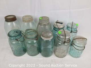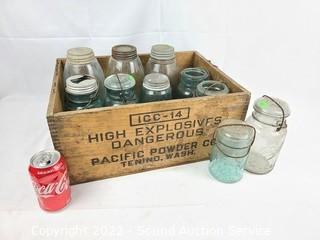 Lot #0174: vtg. Wood Explosive Crate & 10 Canning Jars