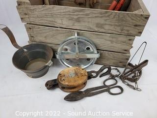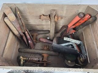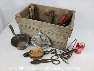 Lot #0184: Wood Crate w/Vtg. Tools