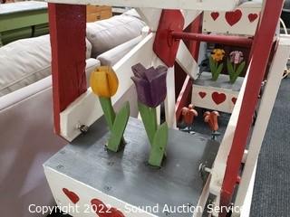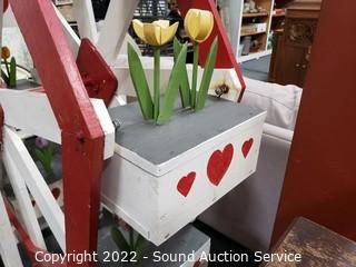 361 Lots including; Wood Yard Art Ferris Wheel, Rough Cut Wood Boards, Sentry Combination Fire Safe, Wood Barrel, Gray Fabric Power Lift Recliner, Farm Equipment, Some Really Nice Gold & Silver Jewelry, Antique Chests, Antique Pot Belly Bakers Tables, Antique School Desks, Honda GX25 Mantis 4-Stroke Gas 9" Roto-Tiller, Antique Wood Barrel Hand-Crank Butter Churn, Stoneware Crocks, Vtg. Child's Wood Highchairs, Trundle Day Bed w/Mattresses, Olde Solid Maple Rocking Baby Bassinet Bed, Vintage Cannon Heater No.18 Stove, Antique Apothecary, Pottery & Other Bottles, Partial Skull Mount Antlers, Antique Anchor Brand Clothes Wringer, Antique Brunswick Phonograph, Antique Primitive Ox Yoke, Vtg. Royal Doulton Brambly Hedge Porcelain China, Antique/Vintage Canning Jars, Blown Glass Fishing Floats, Cast Iron Cookware, Metal Art Dog Sculpture & So Much More!!!