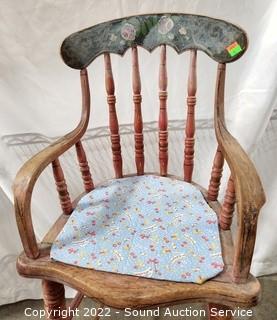 Lot #0033: Antique Hand Painted Wood High Chair