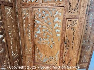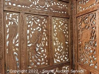 Lot #0067: Carved Wood Peacock 4-Panel Privacy Screen