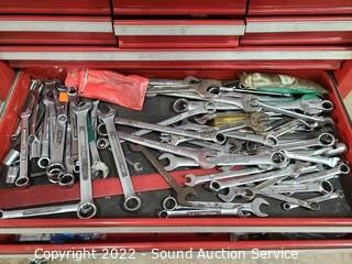 Lot Details: 14 ball bearing drawers. Screwdrivers, punches, Hexkey Allen wrenches, sockets, ratchets, wrenches & more. 52' H x 33" W x 18" D.