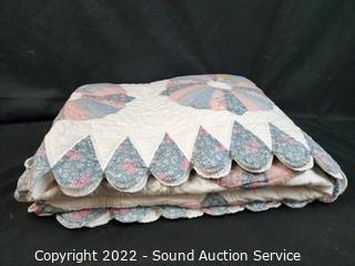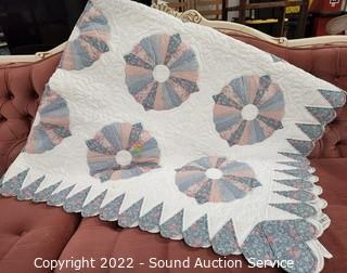 Lot #0026: Nice 66" x 82" Blue/Pink/White Quilt
