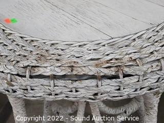 Lot Details: Some wear to the finish, damage to the weave, refer to photos. 29" x 24" diameter.