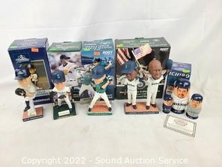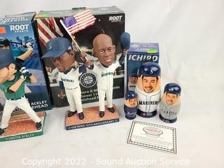 Lot Details: Felix Hernandez, Dustin Ackley, Brandon Morrow, Mark McLemore, & Ichiro Nesting Doll. All in original packaging. One has a broken arm.
