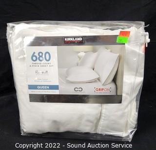 Lot #0281: 5pc Kirkland 680TC Queen White Cotton Sheet Set