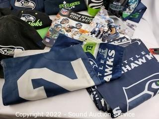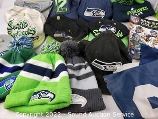 Lot #0229: Assorted Seahawks Hats & Memorabilia