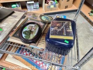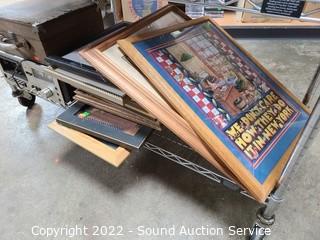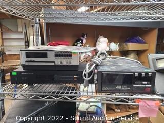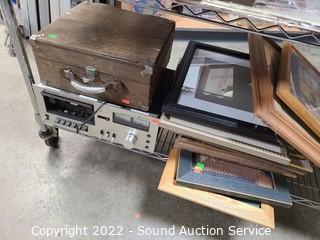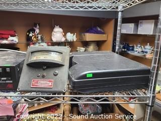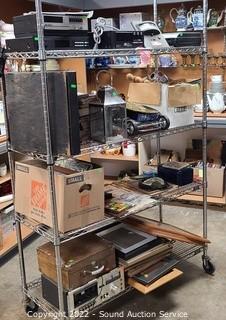 Lot Details: Proton 440 Stereo Tuner, Cosmopolitan magazines, candle lantern, 12" interlocking turned wood rods (probably for a shelving unit, no shelves), AEI Propak Cassette system, Weston 785 Industrial Circuit Tester, Quasar VA520SE Accessory, Electronics not functioning or untested. And more. Cart NOT included.