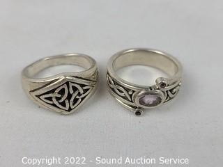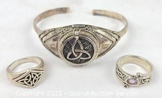 Lot #0151: Sterling Celtic Knot Cuff Bracelet & 2 Rings