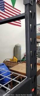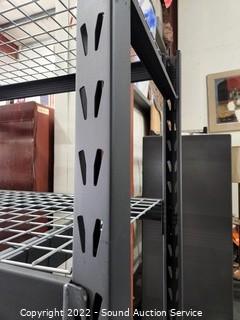 Lot Details: End frame piece is bent on one side. 72" H x 72" W x 23" D. Steel wire shelves.