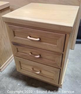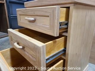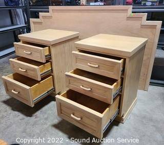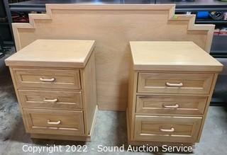 Lot #0067: Oak Queen Headboard w/2 3-Drawer Nightstands
