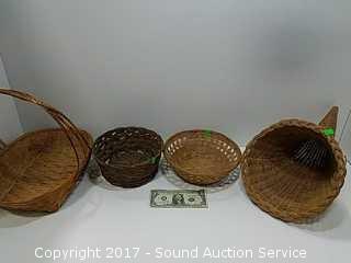 Lot #0164: 3 Woven Baskets & Cornucopia Basket