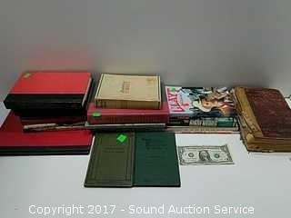 Over 300 Lots - Shop Tools, Craftsman Compound Miter Saw, Workmates, Sanders, Bench Vice, Wood Burner, Knives, Magnet Trays, Craftsman Table Saw, Antique Photo's, Newspapers, 1875 Vulgate Bible, 40" LED TV, Vintage Bedroom Sets, Waterfall Furniture, Gorgeous Buffet, Matching Dining Table, Stone Chess Set, Auto Tuner, Kenwood Receiver, JBL Speakers, Sterling Silverware and Salt & Pepper, Vintage German Walnut Mantle Clocks, Vintage Household Items, ERTL Diecast Banks, Disney Records, Marx Train Set, Spotting Scope & So Much More!!!