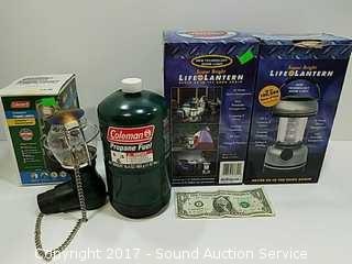 Lot #0119: Compact Coleman Propane Lantern & Other