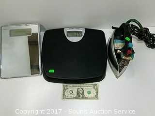 Lot #0170: Digital Scale, Iron & Makeup Mirror